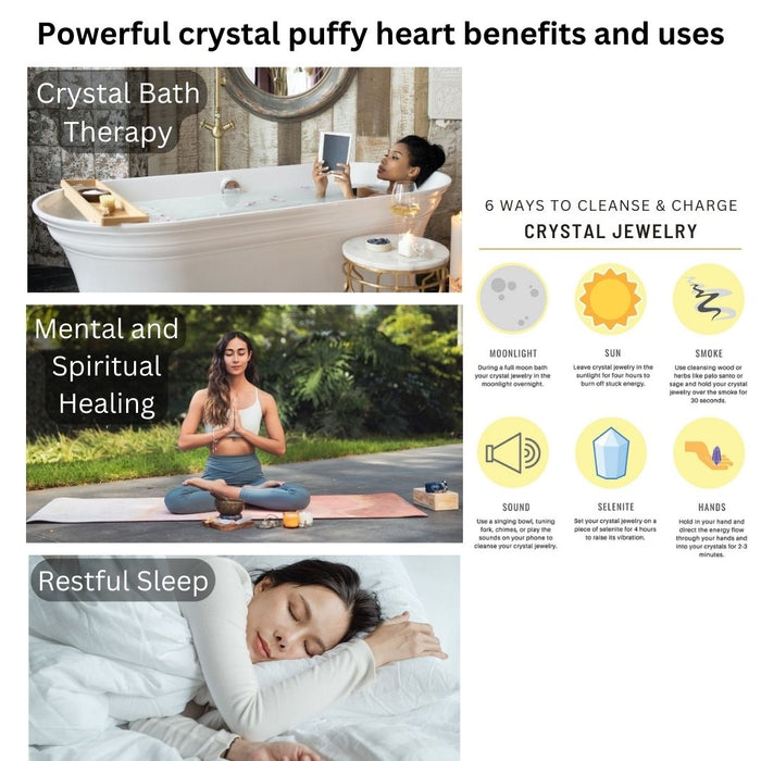 - Bei Sitzungen zur Energieheilung können herzförmige Kristalle auch dabei helfen, emotionale Traumata zu heilen, Emotionen auszugleichen und Ängste und Sorgen zu reduzieren.