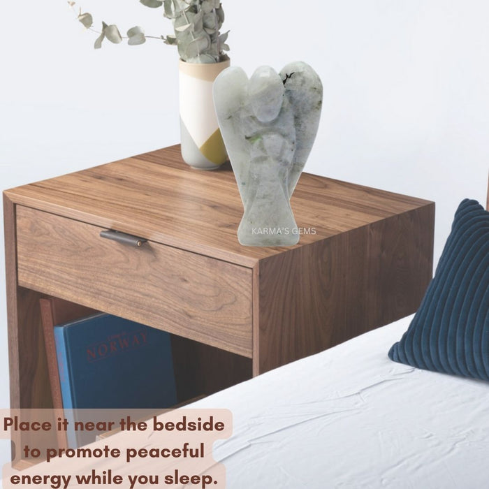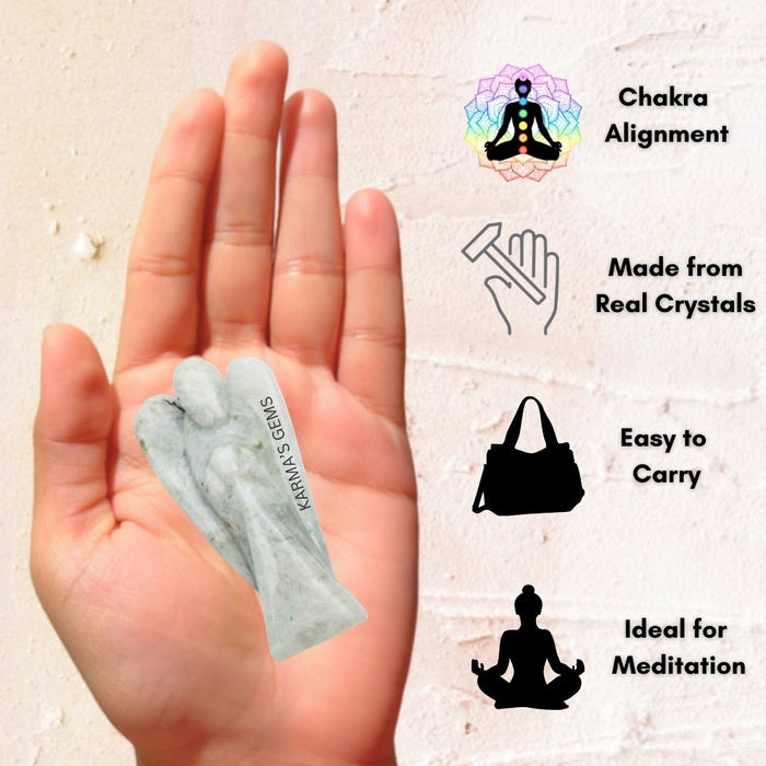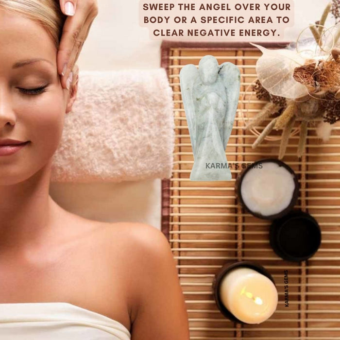 On pense qu'il favorise la stabilisation des sautes d'humeur et la purification du corps. Gardez-le dans les endroits où la paix et la sérénité sont nécessaires, y compris dans votre poche. Gardez ce magnifique ange en cristal sculpté dans votre poche, ou gardez-le près de votre lit la nuit pour invoquer les anges et obtenir conseils, bénédictions ou amour.
