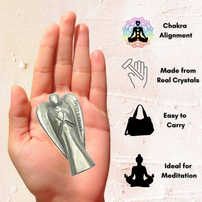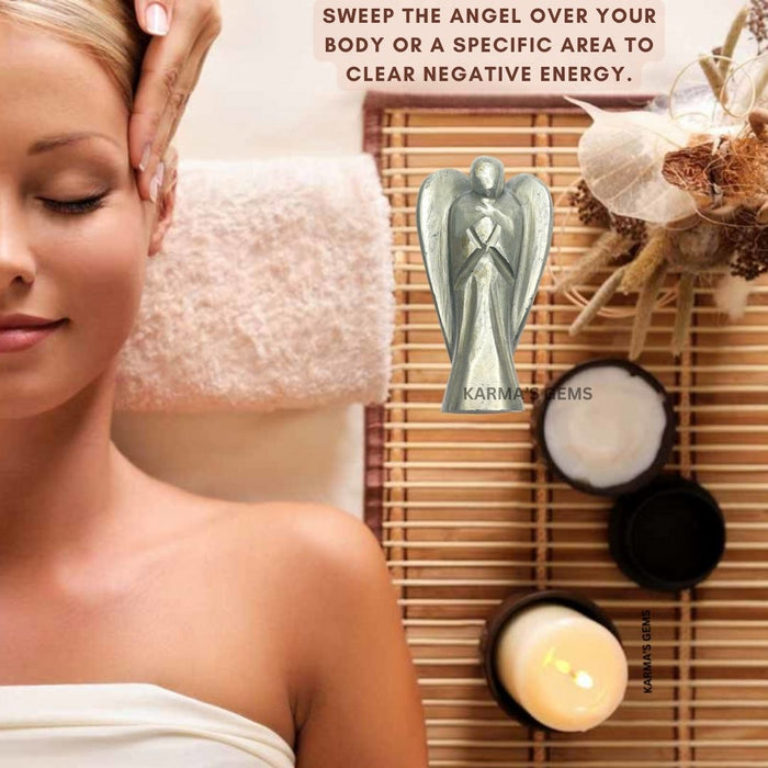 On pense qu'il favorise la stabilisation des sautes d'humeur et la purification du corps. Gardez-le dans les endroits où la paix et la sérénité sont nécessaires, y compris dans votre poche. Gardez ce magnifique ange en cristal sculpté dans votre poche, ou gardez-le près de votre lit la nuit pour invoquer les anges et obtenir conseils, bénédictions ou amour.