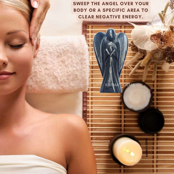 On pense qu'il favorise la stabilisation des sautes d'humeur et la purification du corps. Gardez-le dans les endroits où la paix et la sérénité sont nécessaires, y compris dans votre poche. Gardez ce magnifique ange en cristal sculpté dans votre poche, ou gardez-le près de votre lit la nuit pour invoquer les anges et obtenir conseils, bénédictions ou amour.