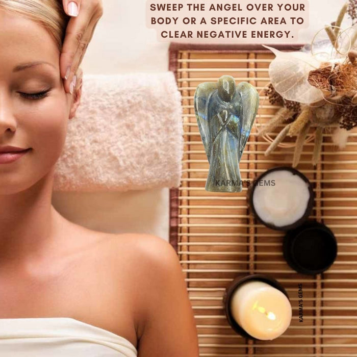 On pense qu'il favorise la stabilisation des sautes d'humeur et la purification du corps. Gardez-le dans les endroits où la paix et la sérénité sont nécessaires, y compris dans votre poche. Gardez ce magnifique ange en cristal sculpté dans votre poche, ou gardez-le près de votre lit la nuit pour invoquer les anges et obtenir conseils, bénédictions ou amour.